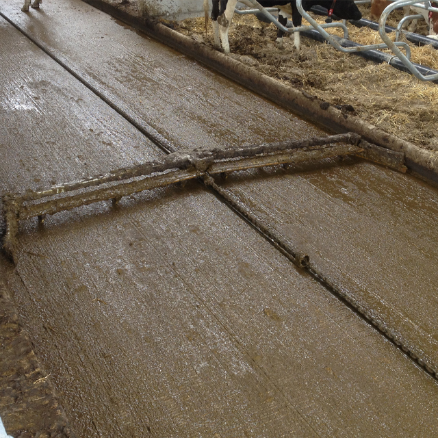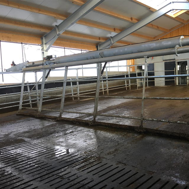 Zusätzlich kann der Treiber noch mit einem Schieber ausgestattet werden, um Spaltenböden oder planbefestigte Flächen zu reinigen. Der Abschluss zum Rücktrieb kann mit Rohren oder blickdicht erfolgen