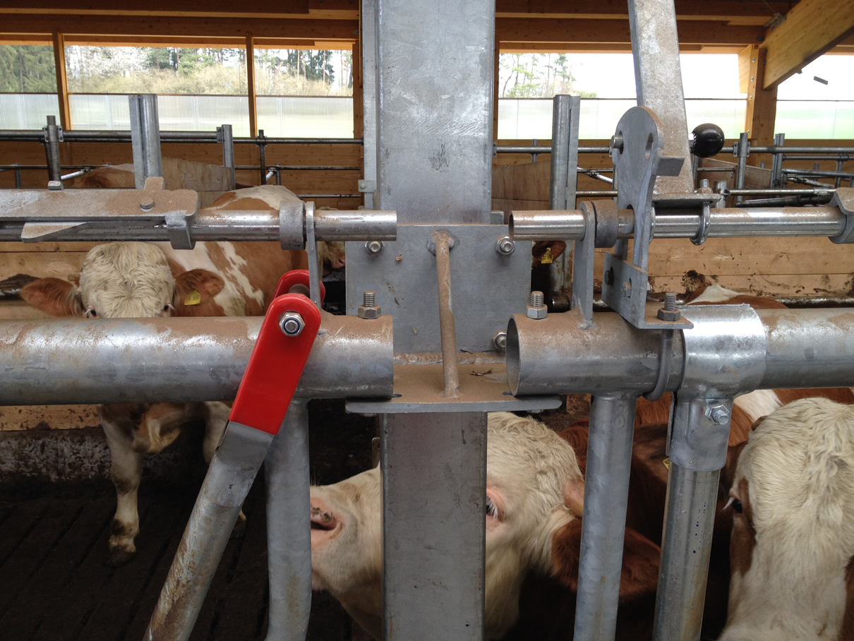Nackenriegel in verschieden Ausführungen oder Selbstfang-Fressgitter